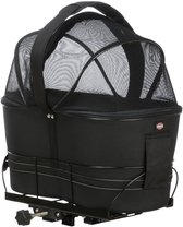 J'ai fait beaucoup de recherches et c'est devenu mon choix. Je ne le regrette pas. Panier pour chien très solide avec un excellent kussen et une sangle robuste pour maintenir le chien dans le panier. Il peut s'y asseoir et se tenir debout, sans que le chien puisse en sortir. Le chien dans ce cas est un gros Jack Russel (Parcel) de 9 kilos. Le montage sur le porte-bagages est très simple. C'est un vélo moderne, donc l'adaptateur fourni n'est pas nécessaire. Très robuste et... le chien l'adore. Et moi.