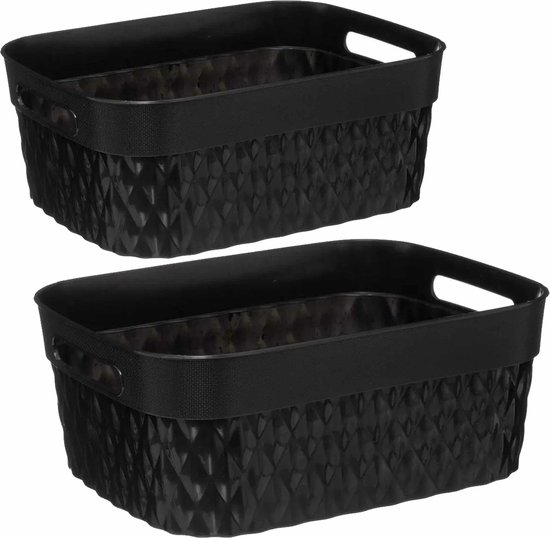 Paniers de Paniers de rangement/ boîtes de rangement - 5L - 8,5L - noir - plastique - lot de 2x