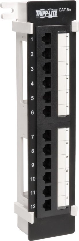 Tripp Lite N050-012. Connecteur (s): RJ-45, Types de câbles pris en charge: Cat5, Cat5e. Couleur du produit: Zwart, Wit, Certification: TAA, RoHS. Largeur: 254 mm, Hauteur: 83,8 mm, Profondeur: 48,3 mm. Largeur du colis: 80 mm, Profondeur du colis: 55,1 mm, Hauteur du colis: 279,9 mm. Largeur du carton principal: 34,5 cm, Longueur du carton principal: 30,3 cm, Hauteur du carton principal: 42 cm