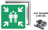 Le panneau Extincteur à poudre est conçu pour une utilisation intérieure et extérieure et peut être monté de différentes manières. Une méthode consiste à utiliser des bandes autocollantes, qui peuvent facilement être appliquées au dos du panneau pour le fixer sans effort sur un mur plat.