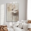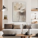 Une grande fleur délicate aux pétales beiges doux flotte sur un fond brumeux, semblable à une aquarelle, avec des ombres légères.Spécifications produit