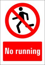 Le panneau de course est un panneau rectangulaire avec un symbole d'interdiction pour indiquer que vous n'êtes pas autorisé à courir à cet endroit. Le panneau comporte le texte anglais No en lettres blanches sur fond rouge. Le panneau est disponible en différentes tailles et convient à une utilisation intérieure et extérieure.