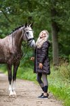 Culotte sportive pour femme de la collection hiver de Cavallo, en softshell, à séchage rapide, respirant, très grand teint, anti-salissure, doublure super douce et brossée pour un confort de port ultime, assise entièrement en PU avec imprimé fer à cheval, pour une meilleure adhérence dans le selle, très résistante et robuste, fermetures de jambes extrêmement confortables en tissu hautement élastique, large ceinture avec passants pour ceinture, décorée de détails scintillants, 73% polyamide, 27% élasthanne.