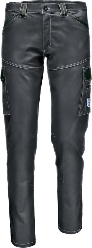 Pantalon en tissu sergé stretch brossé 98 % coton, 2 % élasthanne ; grammage 240 gr/m², avec traitement anti-salissures et déperlant.