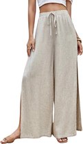 Pantalon en lin Livano pour femme - Pantalon d'été - Adultes - Pantalon long - Pantalon de plage - Été - Style Ibiza - Marron - Taille L