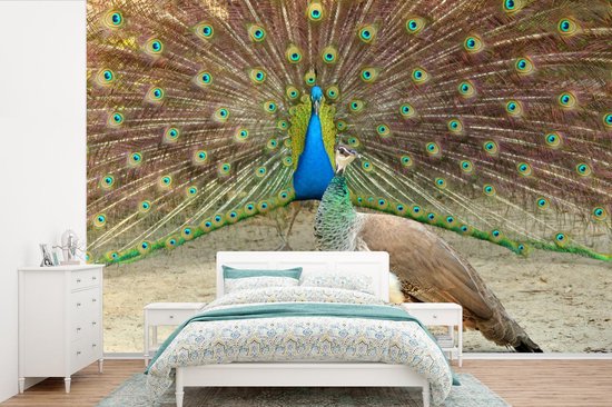 Paon vert mâle montre des plumes au paon femelle papier peint photo vinyle 360x240 cm - Tirage photo sur papier peint