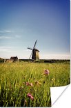 Papier affiche Moulin avec fleurs 80x120 cm - Tirage photo sur Poster (décoration murale salon / chambre) / Poster Paysages