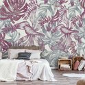 Papier Papier peint photo Intissé - Feuilles de Jungle Botanique Rouge - 254 x 184 cm