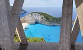 Papier Papier peint photo - Papier Peint Intissé - Navagio Beach Zakynthos Window View 3D - Shipwreck Beach - 208 x 146 cm
