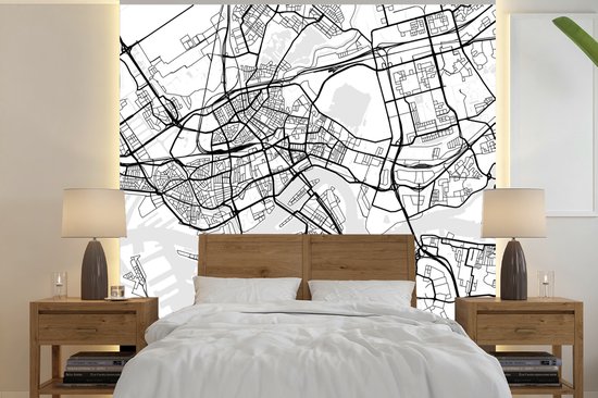Papier peint - Carte Papier peint photo - Rotterdam - Zwart - Wit - Largeur 240 cm x hauteur 240 cm