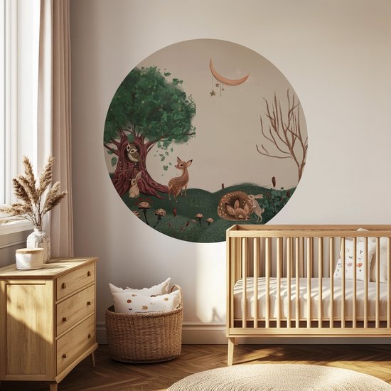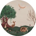 Papier peint cercle Forêt Enchantée #2 - Ø 100 cm - Forêt Enchantée - Animaux de la forêt - Forêt Magique - Papier peint cercle autocollant - Cercle mural intérieur