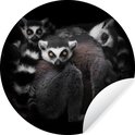 Papier peint cercle - Papier peint autocollant - Maki - Animaux - Sauvage - Zwart et blanc - 80x80 cm - Papier peint cercle - Papier peint rond - Décoration murale ronde - Salon
