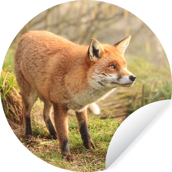 Papier Peint Cercle - Renard - Forêt - Lumière - 50x50 cm - Cercle Mural - Auto-Adhésif - Autocollant Papier Peint Rond