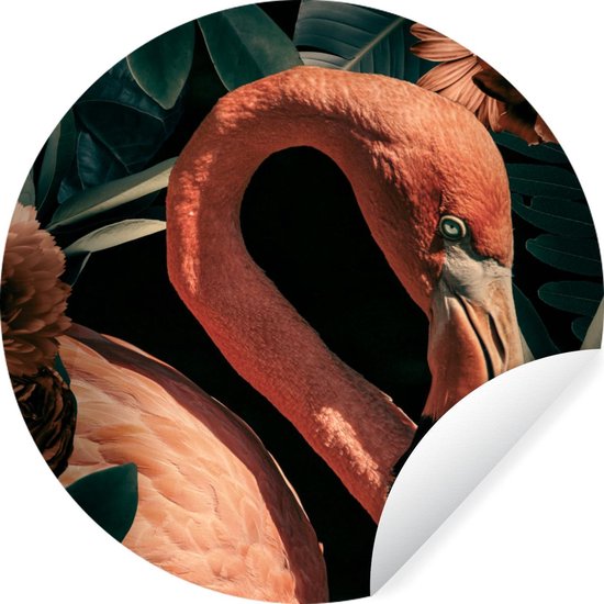 Wallpaper Circle - Flamingo - Feuilles - Fleurs - Dessin - 100x100 cm - Wall Circle XXL
