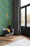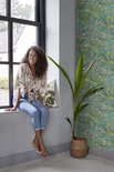 Ce papier peint tendance avec des feuilles de jungle tropicale et des oiseaux de paradis en bleu pétrole et vert jungle crée une ambiance tropicale dans votre maison toute l'année et s'intègre parfaitement au look tropical-botanique. Voulez-vous compléter le look? Combinez ensuite ce papier peint avec des couleurs claires, des matériaux naturels et, enfin et surtout : beaucoup de plantes.
