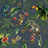 Papier peint botanique à motifs d'animaux tropicaux et de jungle