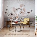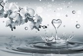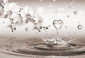 Papier peint Fleurs Gouttes d'Eau Coeur | XXL - 312 cm x 219 cm | Polaire 130g / m2