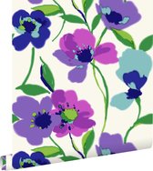 Pour les romantiques parmi nous! Noms de fleurs latins ornés sur un beau papier peint intissé avec effet de peinture à la craie.