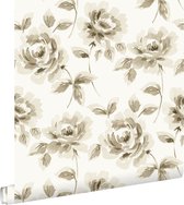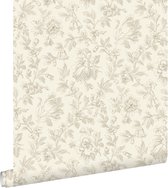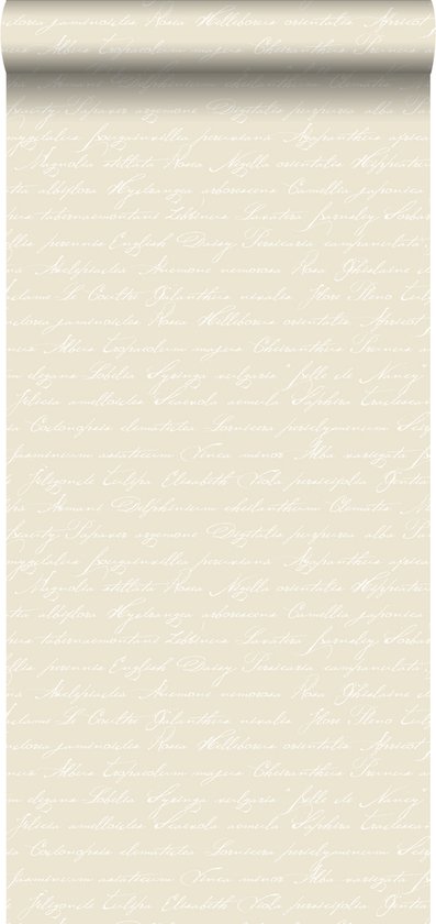 papier peint intissé imprimé craie manuscrite noms de fleurs latines beige - 128033 ESTAhome