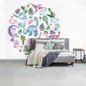 Papier Peint - Papier Papier peint photo Chambre d'Enfant - Dinosaurus - Cercle - Largeur 280 cm x Hauteur 280 cm