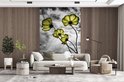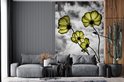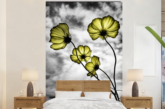 Papier Peint - Papier Papier peint photo Fleurs - Zwart - Wit - Jaune - Largeur 170 cm x Hauteur 260 cm