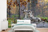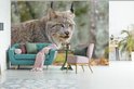 Papier peint - Papier Papier peint photo Lynx - Forêt - Grijs - Largeur 330 cm x Hauteur 220 cm