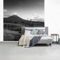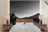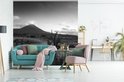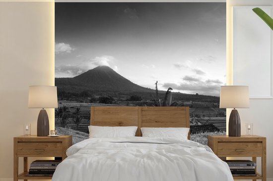 Papier peint - Papier peint Papier peint photo Rizières et volcans en Indonésie - noir et blanc - Largeur 220 cm x hauteur 220 cm