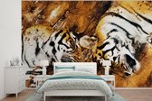Papier peint - Papier peint Papier peint photo Tigre - Arbre - Feuilles - Largeur 420 cm x hauteur 280 cm