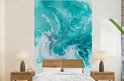 Papier peint - Papier peint photo Aquarelle - Peinture à l'huile - Turquoise - Wit - Largeur 180 cm x Hauteur 280 cm