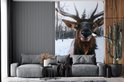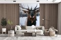 Papier peint - Papier peint photo Cerf - Bois - Neige - Largeur 145 cm x hauteur 220 cm