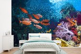 Papier peint - Papier peint photo Corail coloré dans un océan avec des poissons - Largeur 170 cm x hauteur 260 cm