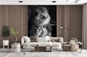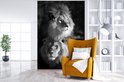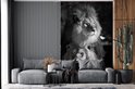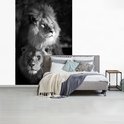 Papier peint - Papier peint photo Deux lions - noir et blanc - Largeur 160 cm x hauteur 240 cm