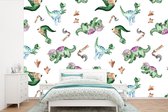Papier peint - Papier peint photo Dinosaurus - Roses - Chambre d'enfants - Largeur 330 cm x hauteur 220 cm