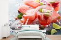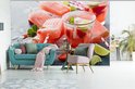 Papier peint Papier peint photo en vinyle - Glace rose saumon et boissons largeur 390 cm x hauteur 260 cm - Tirage photo sur papier peint (disponible en 7 tailles)
