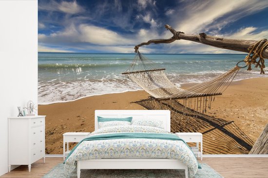 Papier peint Papier peint photo en vinyle - Hamac sur la côte de la mer largeur 450 cm x hauteur 300 cm - Tirage photo sur papier peint (disponible en 7 tailles) / Mer et plage