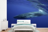 Papier peint Papier peint photo en vinyle - Queue de baleine bleue au dessus de la surface de l'eau largeur 385 cm x hauteur 280 cm - Tirage photo sur papier peint (disponible en 7 tailles)
