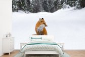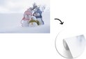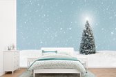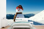 Papier peint Papier peint photo en vinyle - Une famille de poupées de Noël sur le paysage enneigé largeur 360 cm x hauteur 240 cm - Tirage photo sur papier peint (disponible en 7 tailles)
