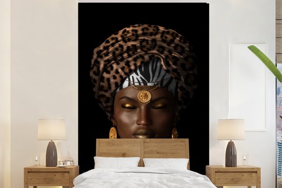Papier peint - Papier peint photo Femme - Foulard - Marron - Largeur 160 cm x hauteur 240 cm
