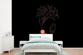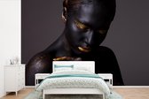 Papier peint - Papier peint photo Femme - Foulard - Or - Zwart - Largeur 525 cm x hauteur 350 cm