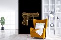 Papier peint - Papier peint photo Gun - Zwart - Or - Largeur 195 cm x Hauteur 300 cm