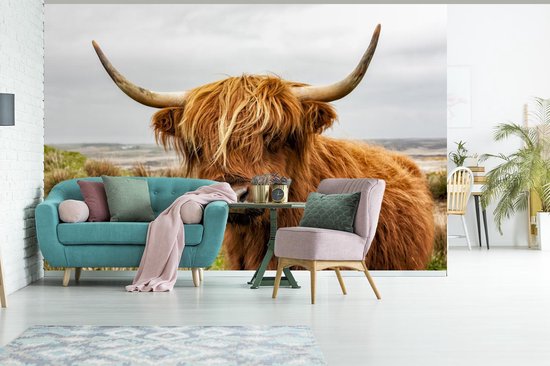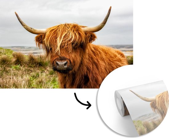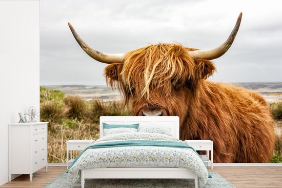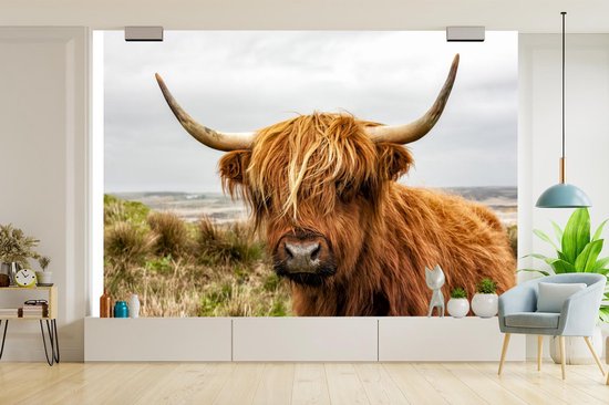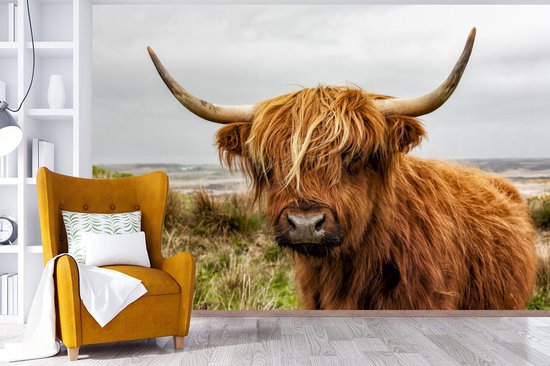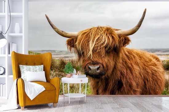 Papier peint - Papier peint photo Highlander écossais - Vache - Dunes - Largeur 330 cm x hauteur 220 cm