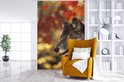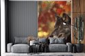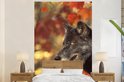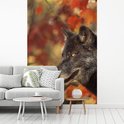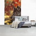 Papier peint - Papier peint photo Loup - Gros plan - Feuilles - Largeur 195 cm x hauteur 300 cm