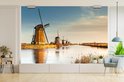 Papier peint - Papier peint photo murale Moulins à vent de Kinderdijk au coucher du soleil aux Pays- Nederland - Largeur 525 cm x hauteur 350 cm