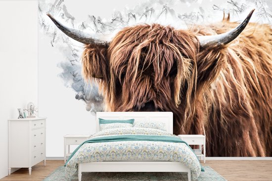 Papier peint - Papier peint photo peint Highlander écossais - Animaux - Fumée - Largeur 525 cm x hauteur 350 cm