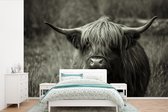 Papier peint - Papier peint photo peint Highlander écossais poilu avec rayons de soleil - noir et blanc - Largeur 525 cm x hauteur 350 cm