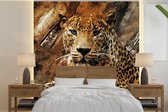 Papier Peint - Papier peint photo Peint Léopard - Imprimé Animal - Goud - Largeur 220 cm x Hauteur 220 cm