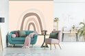 Papier peint - Papier peint photo peint Line au trait arc-en-ciel avec des bandes épaisses de fond rose tendre - Largeur 260 cm x hauteur 260 cm