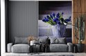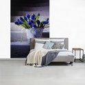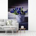 Papier peint - Papier peint photo peint - Un grand récipient avec des muscaris violets - Largeur 225 cm x hauteur 350 cm