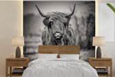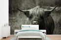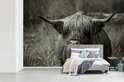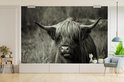 Papier peint - Papier peint photo Scottish Highlander - Portrait - Zwart - Wit - Largeur 360 cm x Hauteur 240 cm