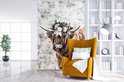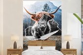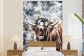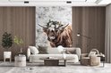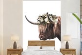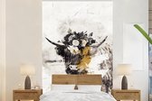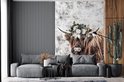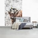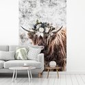 Papier peint - Papier peint photo Scottish Highlander - Zwart - Wit - Fleurs - Largeur 145 cm x hauteur 220 cm